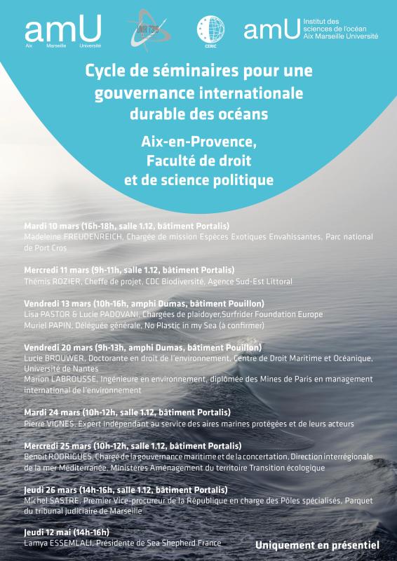 Dans le cadre du DESU Gouvernance internationale durable des océans, porté par Sophie Gambardella et Pascale Ricard, chargées de recherche CNRS, le CERIC organise sur ce thème un cycle de séminaires.