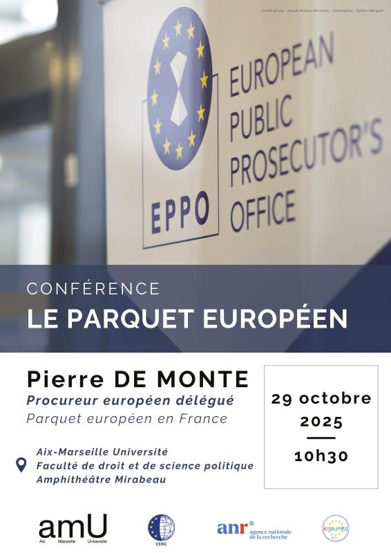 Par dice-dev, 10 octobre, 2025 Mercredi 29 octobre 2025 - 10:30 Mercredi 29 octobre 2025 - 13:00 Aix-en-Provence, campus Schuman, bâtiment Pouillon, amphi Mirabeau Le CERIC est heureux d'accueillir Pierre DE MONTE, Procureur européen délégué, pour une conférence sur le thème du parquet européen. CÉRIC